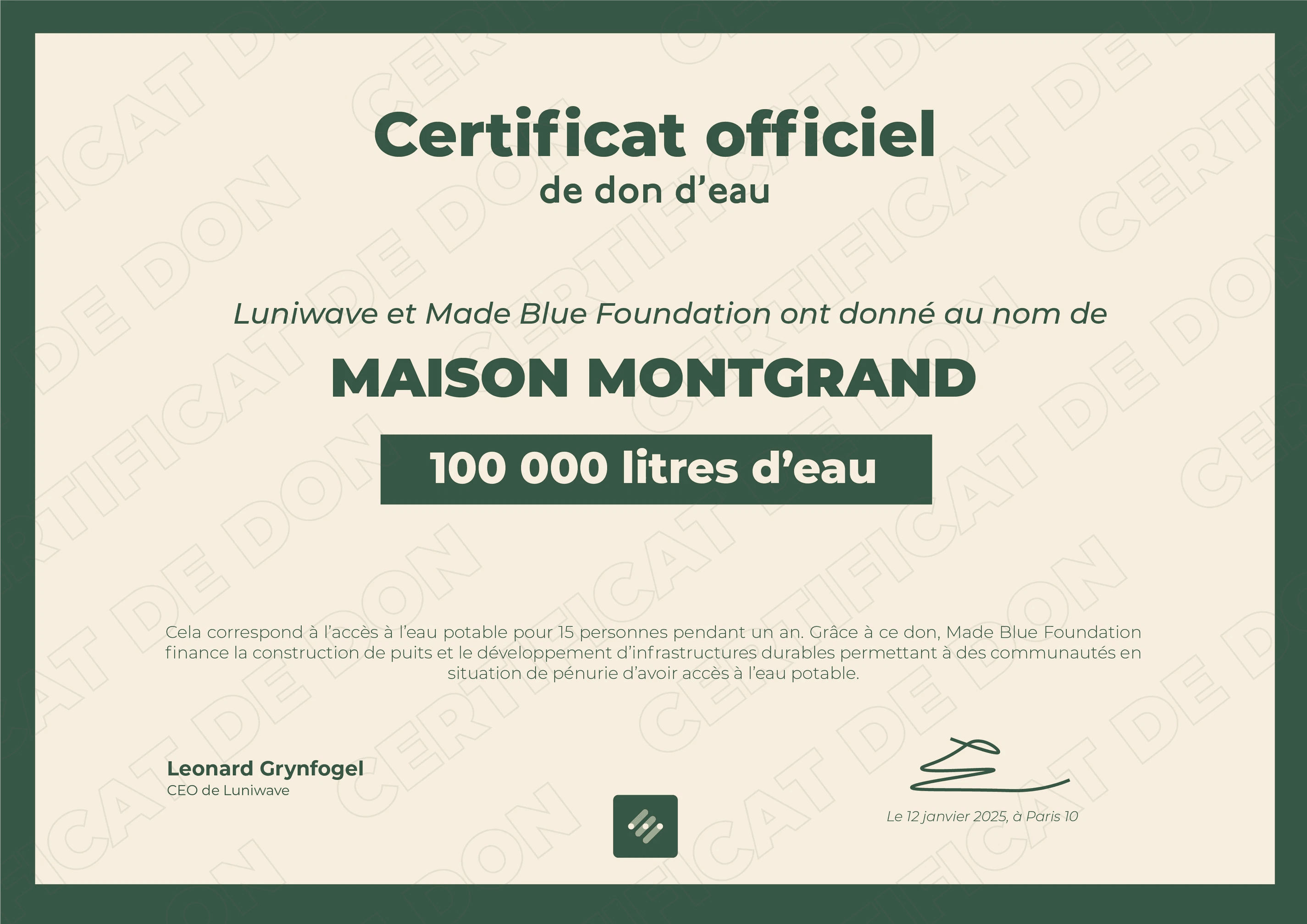 To limit the use of single-use plastic, we have replaced individual water bottles with water containers available free of charge in each building.